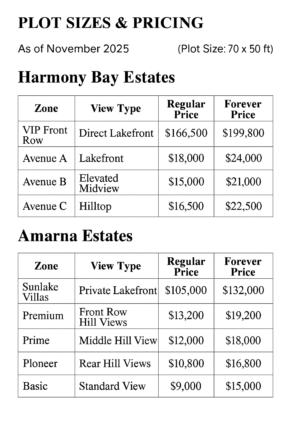 Harmony Bay – Tiered Pricing (Per Plot)