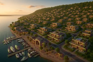 Where water is sacred. Located along the Volta Lake axis, Harmony Bay is engineered for hydro-based wellness, climate cooling and regenerative living infrastructure — ideal for health-centered residences, retreats and hydro-powered innovation estates.